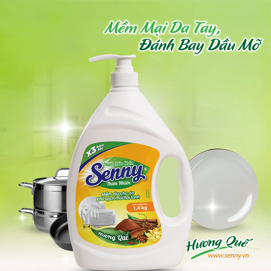 Nước rửa chén Senny hương quế bảo vệ da tay mềm mại, khử sạch mùi tanh, sạch nhanh vết bẩn