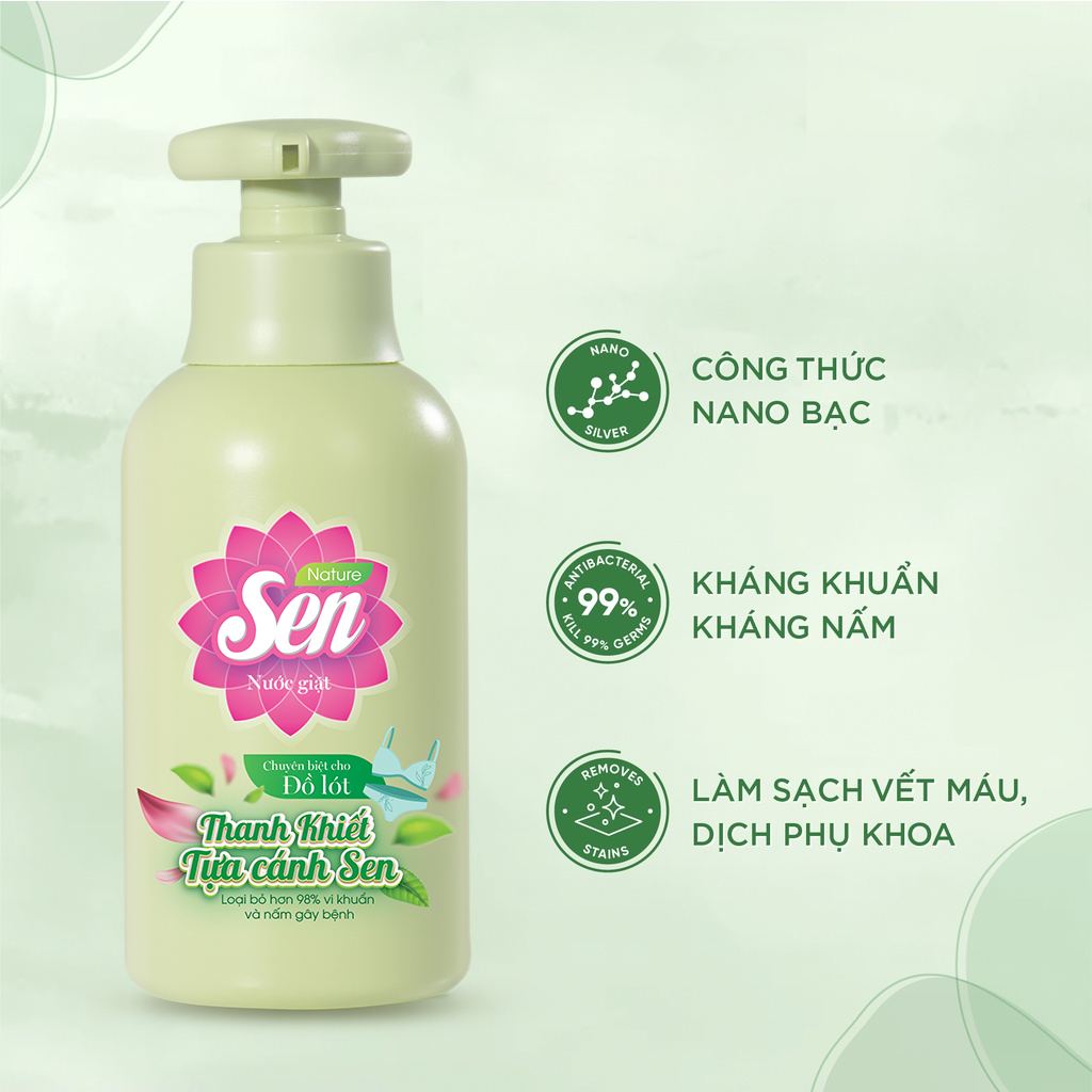 Giặt sạch – Khử mùi – Diệt khuẩn không còn là điều khó khăn khi bạn có Nước Giặt Đồ Lót Sen – giải pháp giặt giũ dịu nhẹ, an toàn nhưng vô cùng hiệu quả dành riêng cho đồ lót.