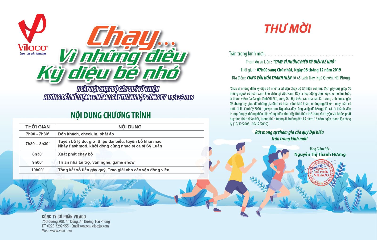 2. Thời gian tổ chức sự kiện: 07 giờ sáng Chủ nhật, ngày 08 tháng 12 năm 2019.