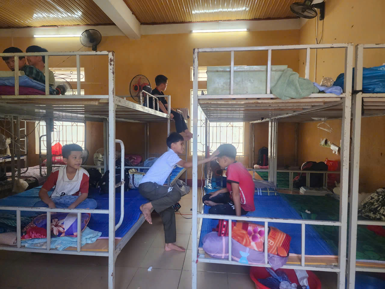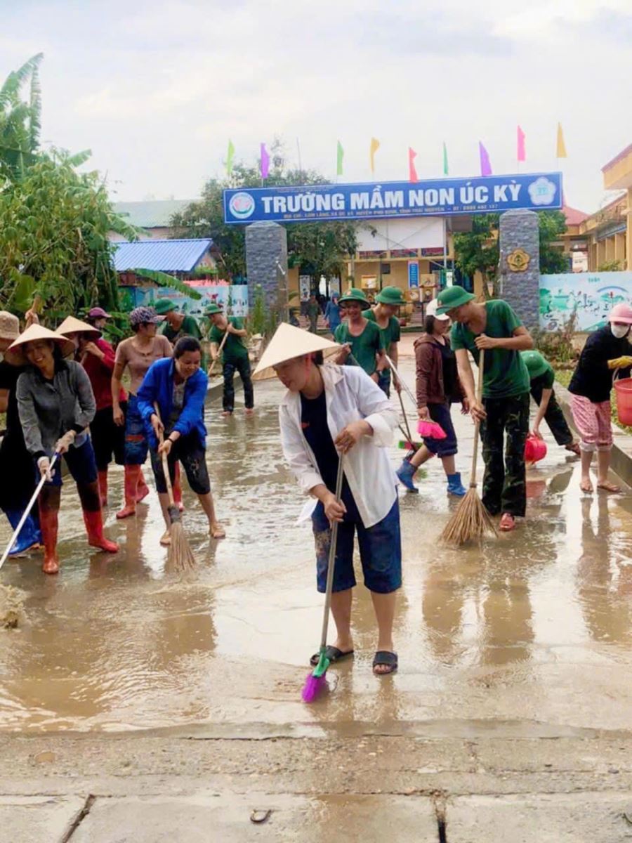 Đội ngũ tình nguyện viên và giáo viên cùng nhau làm sạch các phòng học, ký túc xá, khôi phục lại bàn ghế, bảng viết, và trang thiết bị học tập bị hư hỏng. Đặc biệt, đồ dùng cá nhân và dụng cụ học tập của các em cũng được vệ sinh, sắp xếp lại để các em có thể tiếp tục học tập trong môi trường sạch sẽ, an toàn. Các khu vực bị ngập lụt được dọn dẹp kỹ lưỡng nhằm ngăn chặn nguy cơ dịch bệnh.