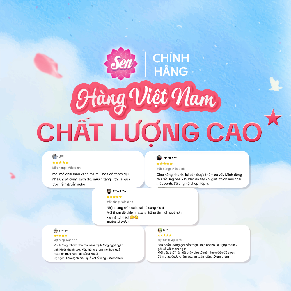"Lúc mang thai mình cực kỳ kỹ tính với các sản phẩm cho cơ thể. SEN là nước giặt đồ lót hiếm hoi mình thấy ưng: dịu nhẹ mà sạch cực kỳ, không mùi hóa học nồng. Bé nhà mình sơ sinh mình còn dùng giặt khăn xô nữa!"