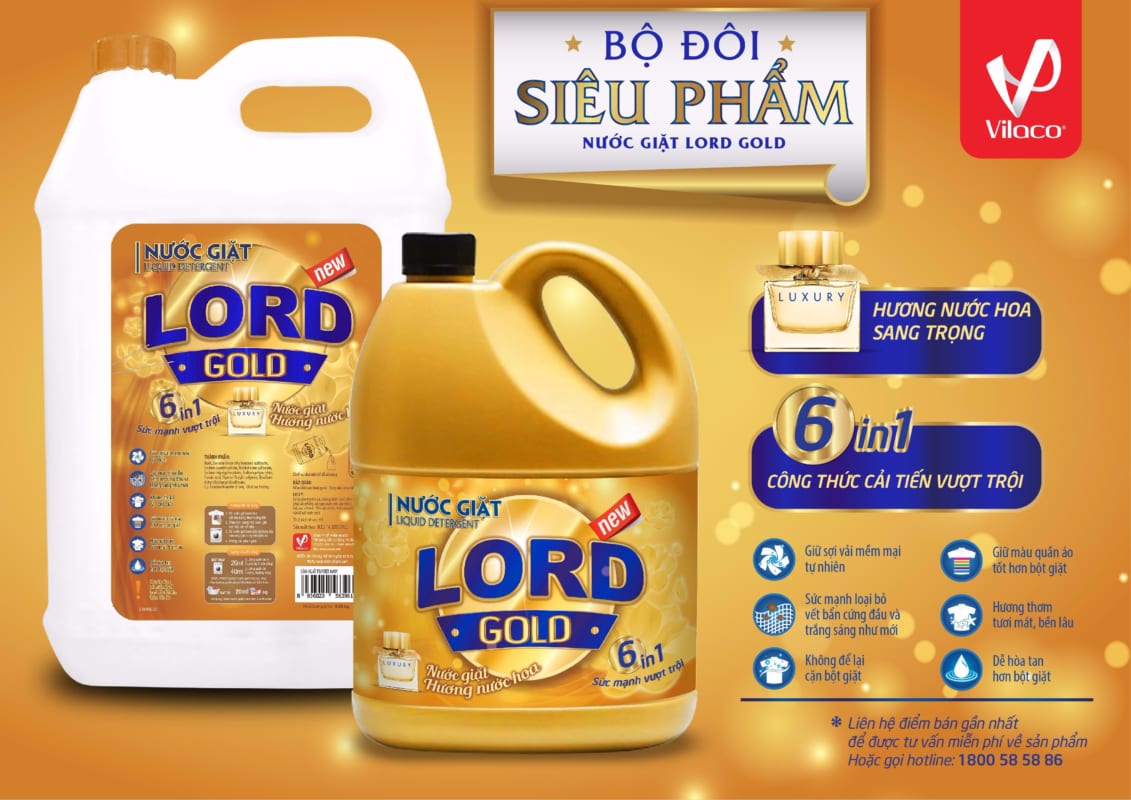 Nước giặt cao cấp Lord Gold 9.36 kg được coi là sự tiếp nối thành công của dòng nước giặt Lord bình dân dòng can 10kg, là Nước giặt Lord trắng 10kg và Nước giặt Lord-S xanh 10kg vốn đã được phổ biến rộng rãi trên thị trường. Nước giặt cao cấp Lord Gold 3.5 kg tập trung vào nhóm các khách hàng có nhu cầu cao hơn với một số đặc tính của nước giặt như mùi hương và độ lưu hương.