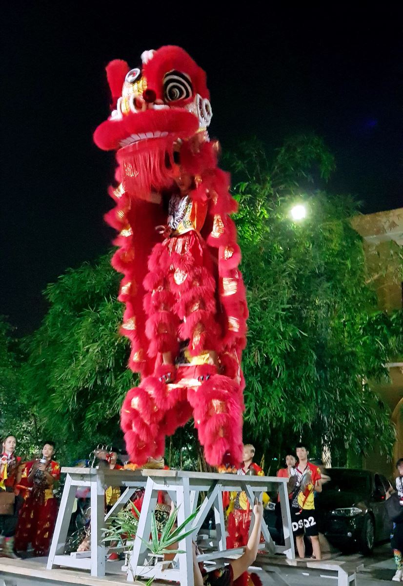 Các em nhỏ và cha mẹ đều cảm thấy rất hào hứng và thích thú với tiết mục trình diễn múa sư tử này.