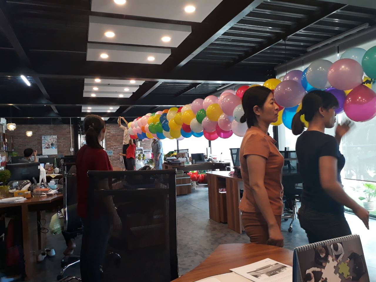 Trong văn phòng của công ty, ngập tràn sắc màu của những trái bóng, giúp văn phòng trở nên tươi vui, hòa cùng không khí trung thu