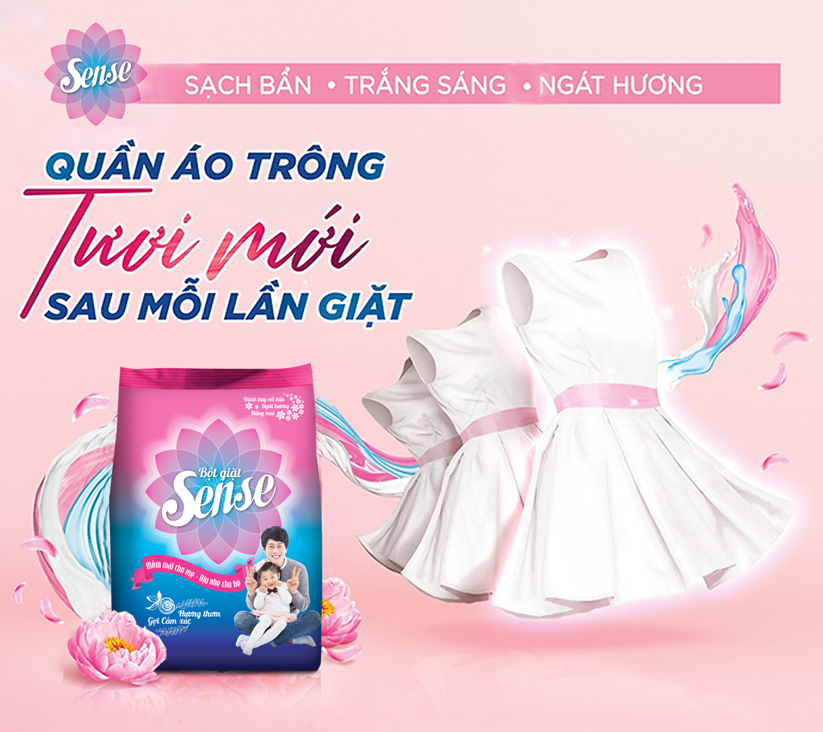 Bột giặt Sense ”Mềm mại cho mẹ - Dịu nhẹ cho bé”