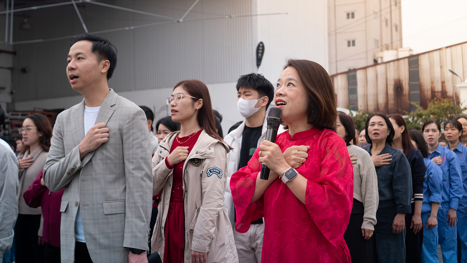 Khoảnh khắc hàng trăm cán bộ nhân viên cùng đặt tay lên ngực trái, đồng thanh cất vang Quốc ca đã tạo nên một không gian thiêng liêng, xúc động, lan tỏa tinh thần trách nhiệm và niềm tin vào sứ mệnh chung.