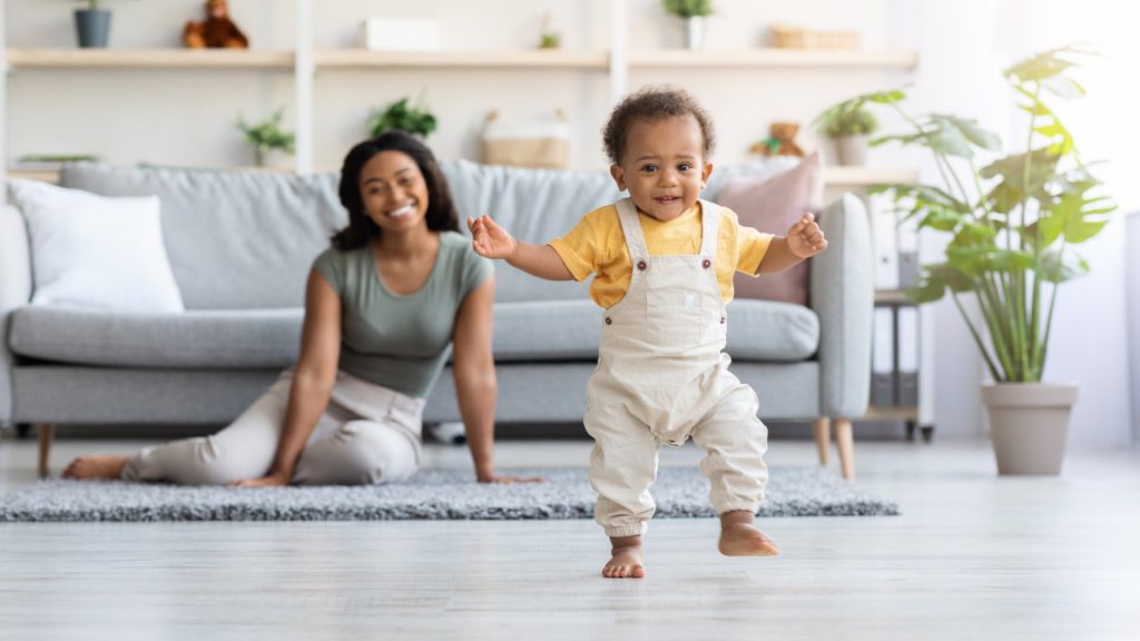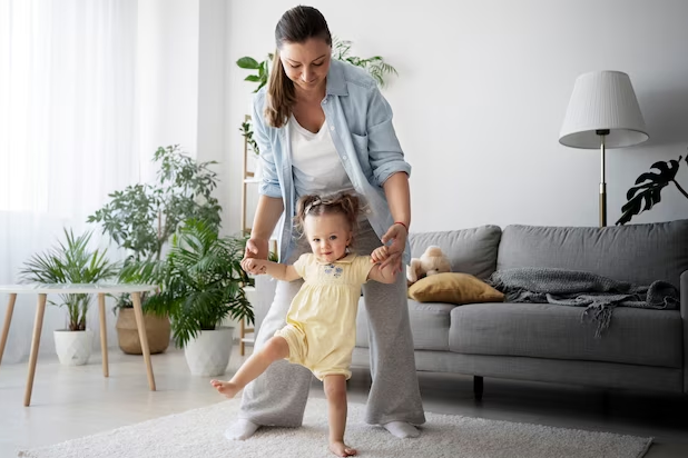 Bé thoải mái nô đùa trên sàn mà không lo trơn trượt vì đã có nước lau sàn senny sả chanh