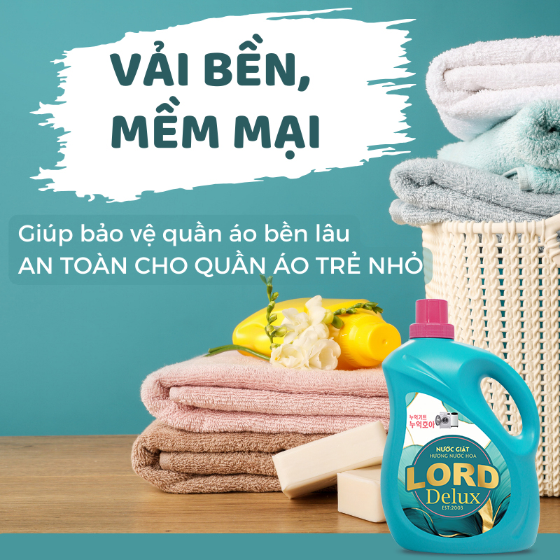 Nước Giặt Lord Delux hương nước hoa 3kg sử dụng công thức màng chắn vô hình lên bề mặt sợi vải, giúp vết bẩn không thể thấm sâu vào sợi vải từ đó có thể dễ dàng làm sạch khi giặt. Ngoài ra sản phẩm này còn giữ màu quần áo cực tốt, giúp quần áo luôn mềm mịn sáng như mới, hương thơm tươi mát có thể lưu lại rất lâu trên quần áo sau mỗi lần giặt.