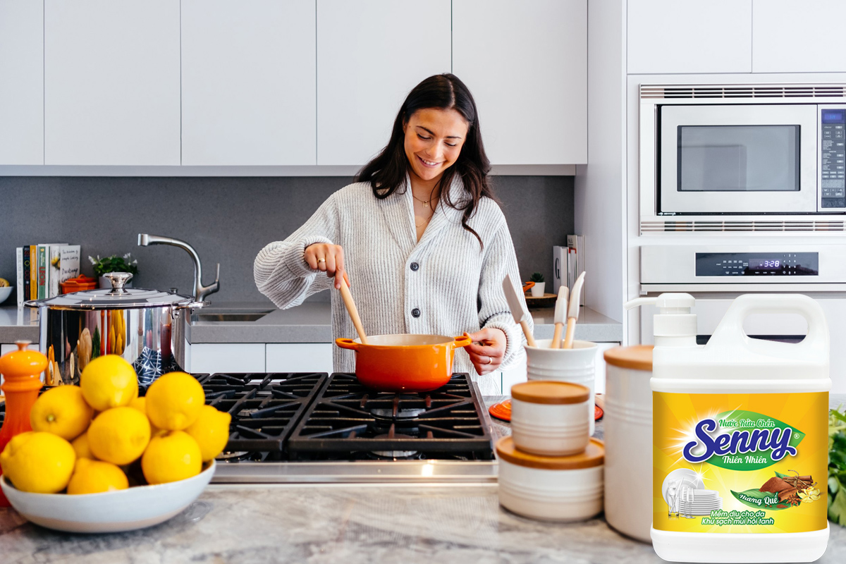 Nhẹ nhàng bếp núc với nước rửa chén Senny hương quế