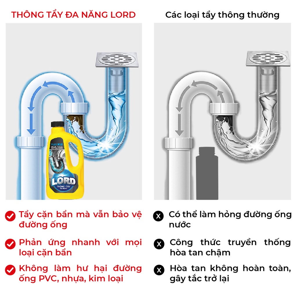 THÔNG TẨY ĐA NĂNG LORD giúp đường ống nước nhà bạn được thông thoáng hơn.