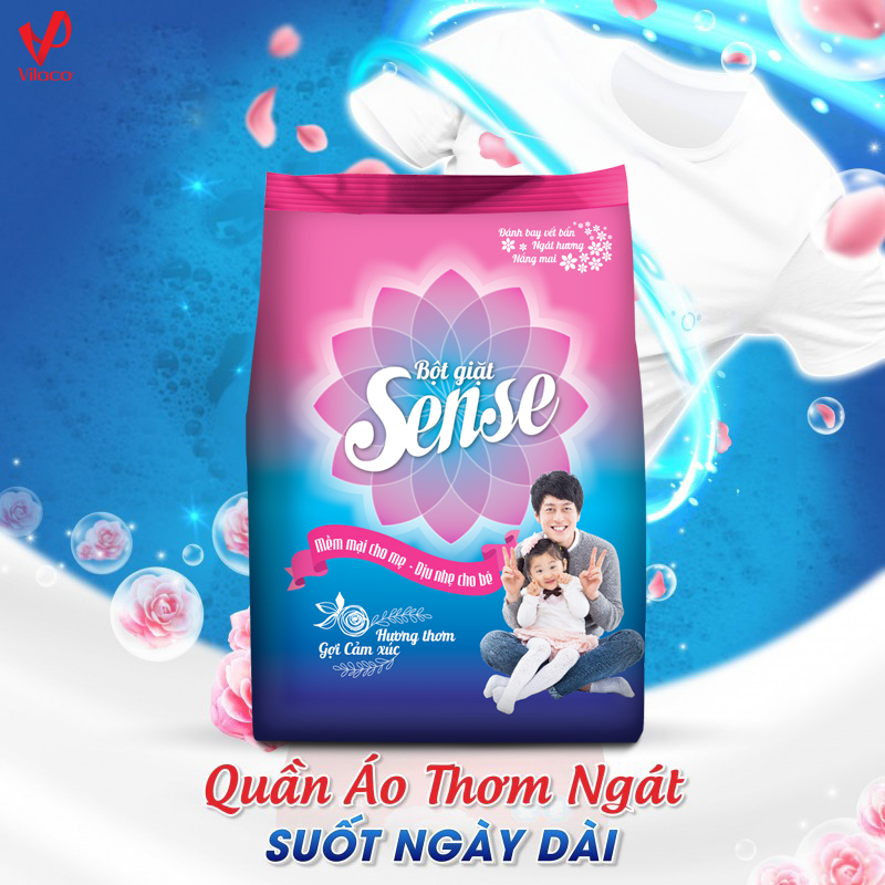 Sense là thương hiệu bột giặt thuộc tập đoàn Vilaco, một trong những tập đoàn lớn chuyên nghiên cứu, sản xuất và kinh doanh các loại chất tẩy rửa, mỹ phẩm. Với bề dày kinh nghiệm cùng sự tập trung đầu tư cho khoa học công nghệ để phát triển chất lượng sản phẩm, Vilaco đã cho ra đời bột giặt Sense hương ngọt ngào với những ưu điểm vượt trội so với các loại bột giặt khác trên thị trường. Bột giặt Sense được người tiêu dùng bình chọn và được đánh giá là một trong những loại bột giặt tốt và an toàn cho trẻ nhỏ hiện nay.