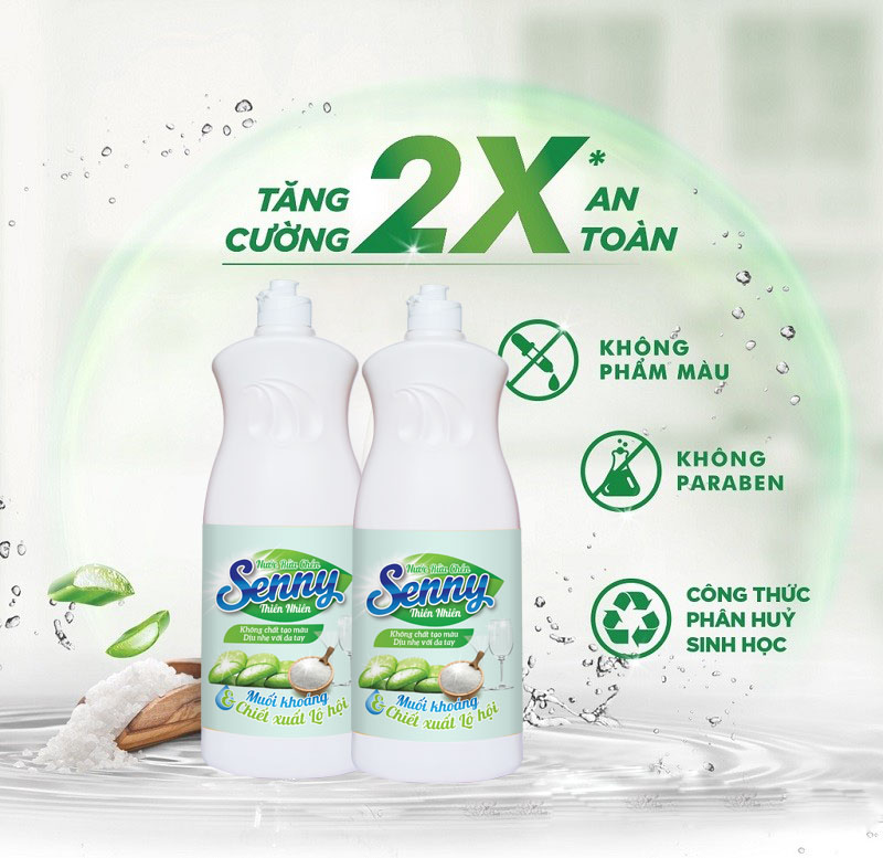 Nước rửa chén Senny Lô Hội là sản phẩm lý tưởng cho những ai tìm kiếm giải pháp làm sạch an toàn và hiệu quả trong công việc nội trợ hàng ngày. Với sự kết hợp hoàn hảo giữa khả năng làm sạch mạnh mẽ và tính năng bảo vệ da tay, sản phẩm mang đến trải nghiệm rửa chén dễ chịu cho người sử dụng. Với Senny Lô Hội, bạn có thể yên tâm sử dụng hàng ngày để giữ cho chén đĩa sạch sẽ, đồng thời chăm sóc đôi tay một cách dịu nhẹ và tự nhiên. Sản phẩm phù hợp cho mọi gia đình muốn tìm kiếm giải pháp làm sạch an toàn và hiệu quả.