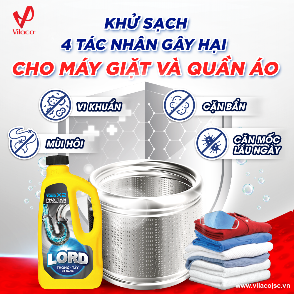 Lord xóa tan mảng bám giúp lồng giặt sạch khuẩn, sáng bóng tức thì