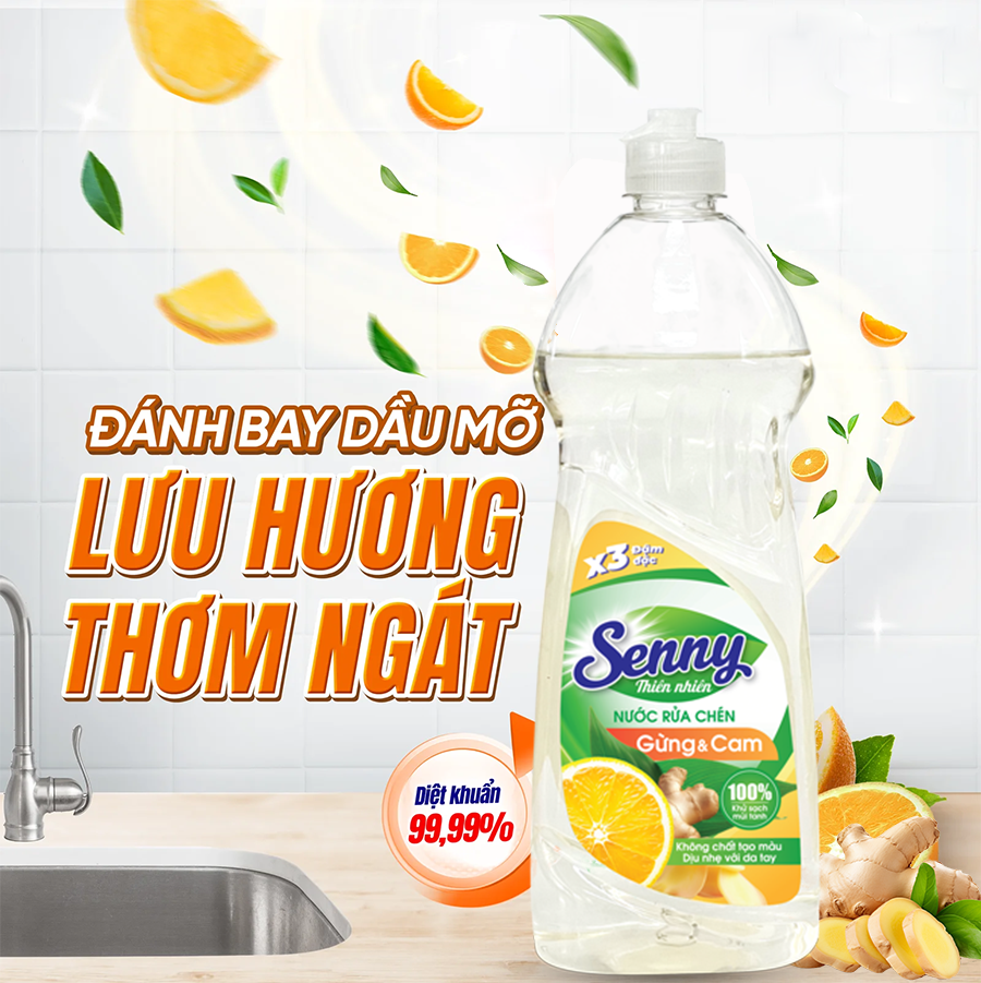 Nước Rửa Chén Senny Gừng & Cam – Sức Mạnh Tự Nhiên, Dịu Nhẹ Đôi Tay