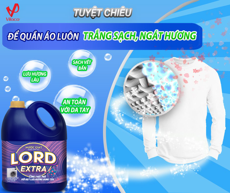 - Nước giặt Lord Extra với hương nước hoa bám quyện, ngọt ngào, tinh tế và quyến rũ