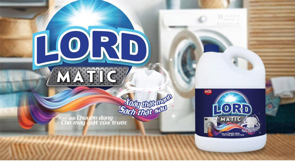 Nước giặt LORD Matic cho máy giặt với sức mạnh xoáy bay vết bẩn trong lồng giặt và công thức đặc biệt giúp quần áo bền màu sau 100 lần giặt. Được THIẾT KẾ PHÙ HỢP NHẤT cho GIẶT MÁY Cửa trước. Ngoài khả năng giặt tẩy sạch đã được chứng minh và thử nghiệm với 8 loại vết bẩn thông thường, Nước giặt LORD Matic còn có khả năng diệt khuẩn tốt, đảm bảo cho quần áo không những sạch về vết bẩn mà còn sạch cả vi khuẩn. LORD Matic kết hợp 3 lợi ích vượt trội: làm trắng, làm sáng & xoáy bay hoàn toàn vết bẩn.