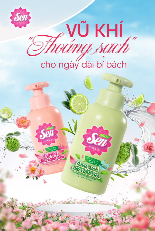 Nước Giặt Đồ Lót Sen(2 mùi hương Thanh Khiết & Dịu Nhẹ) – giải pháp giặt giũ dịu êm, an toàn nhưng đầy sức mạnh trong việc làm sạch sâu – khử mùi – diệt khuẩn, giúp bạn luôn thoáng sạch – nhẹ tênh – tự tin suốt ngày dài. Nước Giặt Đồ Lót Sen – Vũ khí thoáng sạch cho ngày dài bí bách.