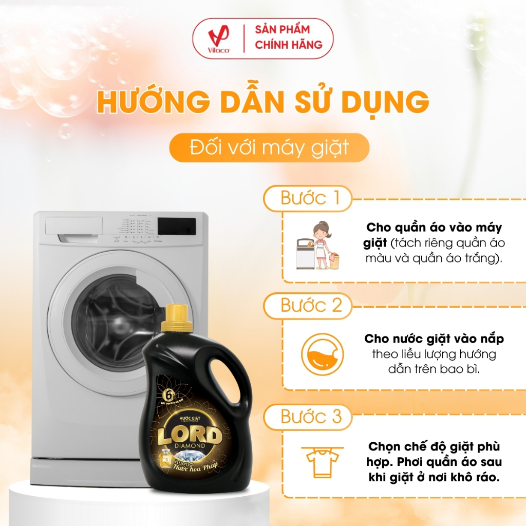 Nước giặt Lord Diamond hương nước hoa Pháp với công thức cải tiến mới, tan nhanh trong nước và thấm sâu vào từng sợi vải giúp dễ dàng giặt sạch quần áo, giữ màu sáng đẹp như mới và ngăn chặn vết bẩn bám trở lại lên quần áo.