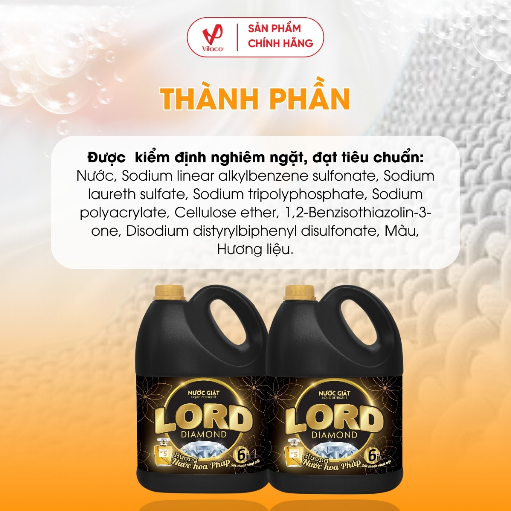 Nước giặt Lord Diamond hương nước hoa Pháp - sản phẩm được quản lý bằng hệ thống quản lý chất lượng đạt tiêu chuẩn ISO 9001:2015. Nước giặt Lord Diamond hương nước hoa Pháp với tinh chất nước hoa Pháp siêu đậm đặc, đánh tan mọi vết bẩn cứng đầu, giúp quần áo luôn sạch và mềm mại, lưu giữ hươmg thơm lâu ngày. Tăng độ bền cho quần áo, lưu giữ màu sắc quần áo luôn trắng sáng như mới.