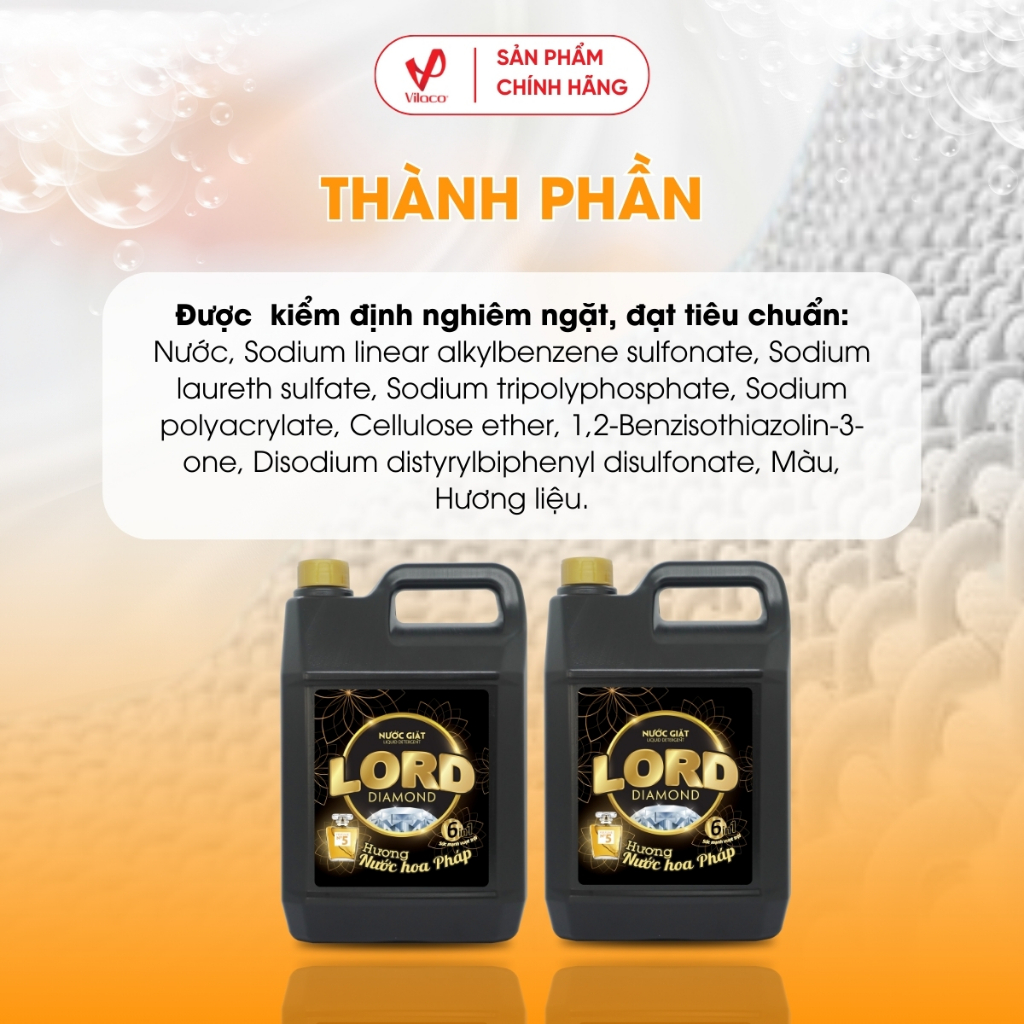 Nước giặt Lord Diamond hương nước hoa Pháp - sản phẩm được quản lý bằng hệ thống quản lý chất lượng đạt tiêu chuẩn ISO 9001:2015. Nước giặt Lord Diamond hương nước hoa Pháp với tinh chất nước hoa Pháp siêu đậm đặc, đánh tan mọi vết bẩn cứng đầu, giúp quần áo luôn sạch và mềm mại, lưu giữ hươmg thơm lâu ngày. Tăng độ bền cho quần áo, lưu giữ màu sắc quần áo luôn trắng sáng như mới.