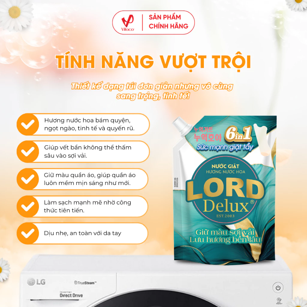 Nước Giặt Xả Lord Delux Hương Nước Hoa Pháp - Sạch Mịn Từng Sợi Vải, Thơm Lâu Đầy Sang Trọng