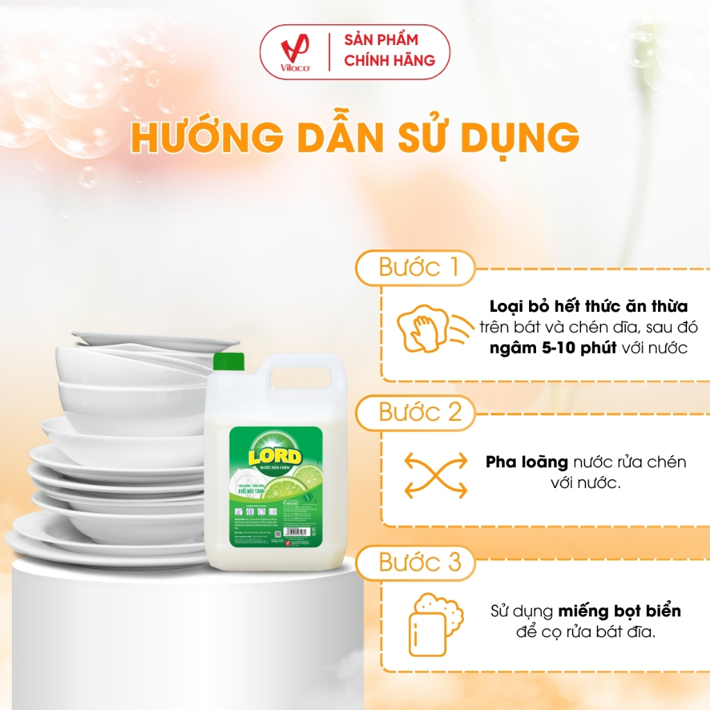Nước rửa chén LORD Chiêt xuất chanh khử mùi tanh Chiết xuất chanh với hiệu quả gấp đôi cả trên chén đĩa nhựa, đánh bật vết dầu mỡ bám dai, cho chén bát luôn sạch bong kin kít