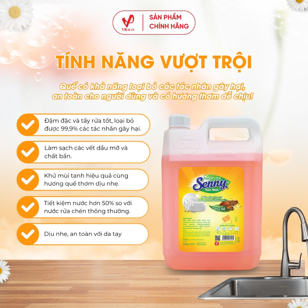 Nước rửa chén Senny hương quế bảo vệ da tay mềm mại, khử sạch mùi tanh, sạch nhanh vết bẩn