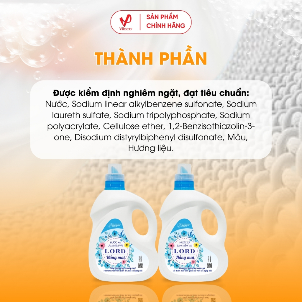 Nước xả làm mềm vải Lord hương nắng mai chống nắng bền màu góp phần giữ màu sắc áo quần luôn mới.