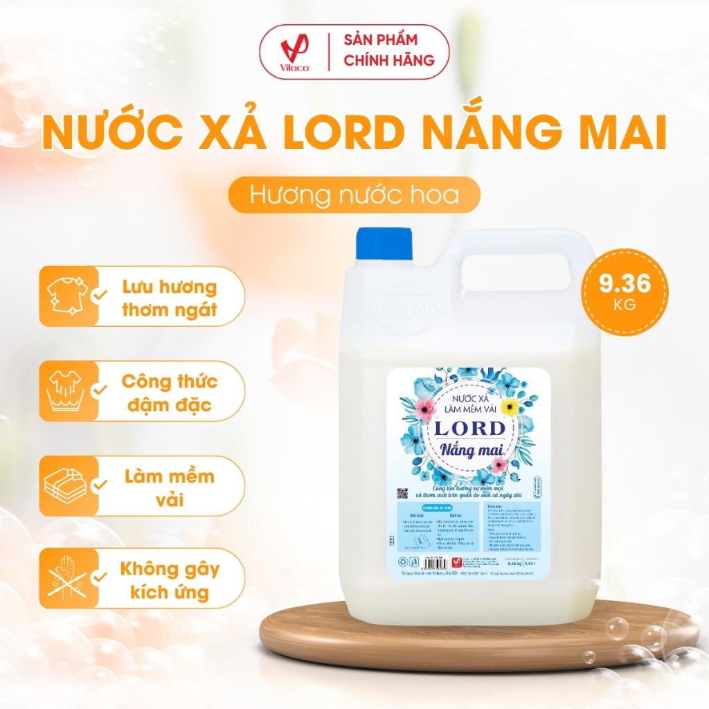 Nước xả làm mềm vải Lord hương nắng mai 9.36kg sử dụng hương thơm đến từ Châu Âu, kết hợp với công thức đậm đặc đánh bật mùi hôi khó chịu, giúp làm mềm vải nhưng không phai màu quần áo, cho quần áo cả ngày dài thơm mát.