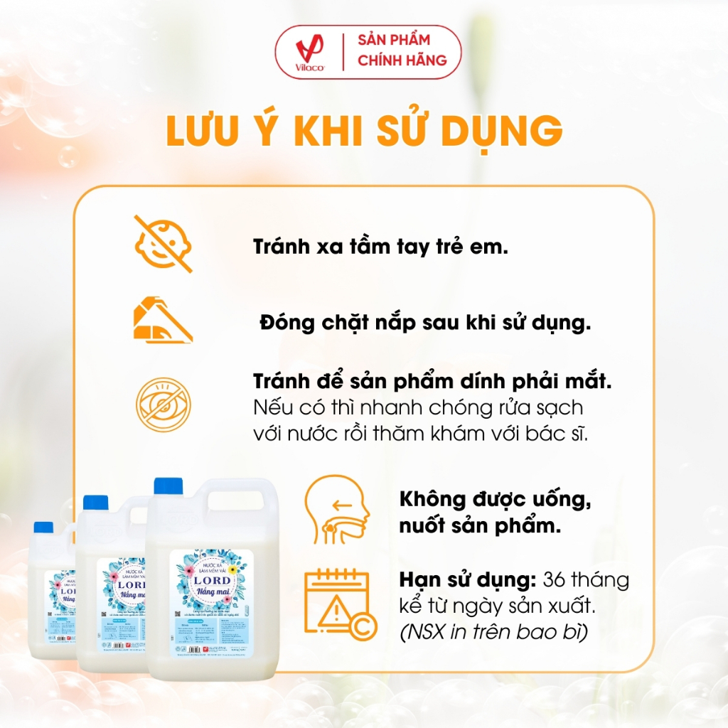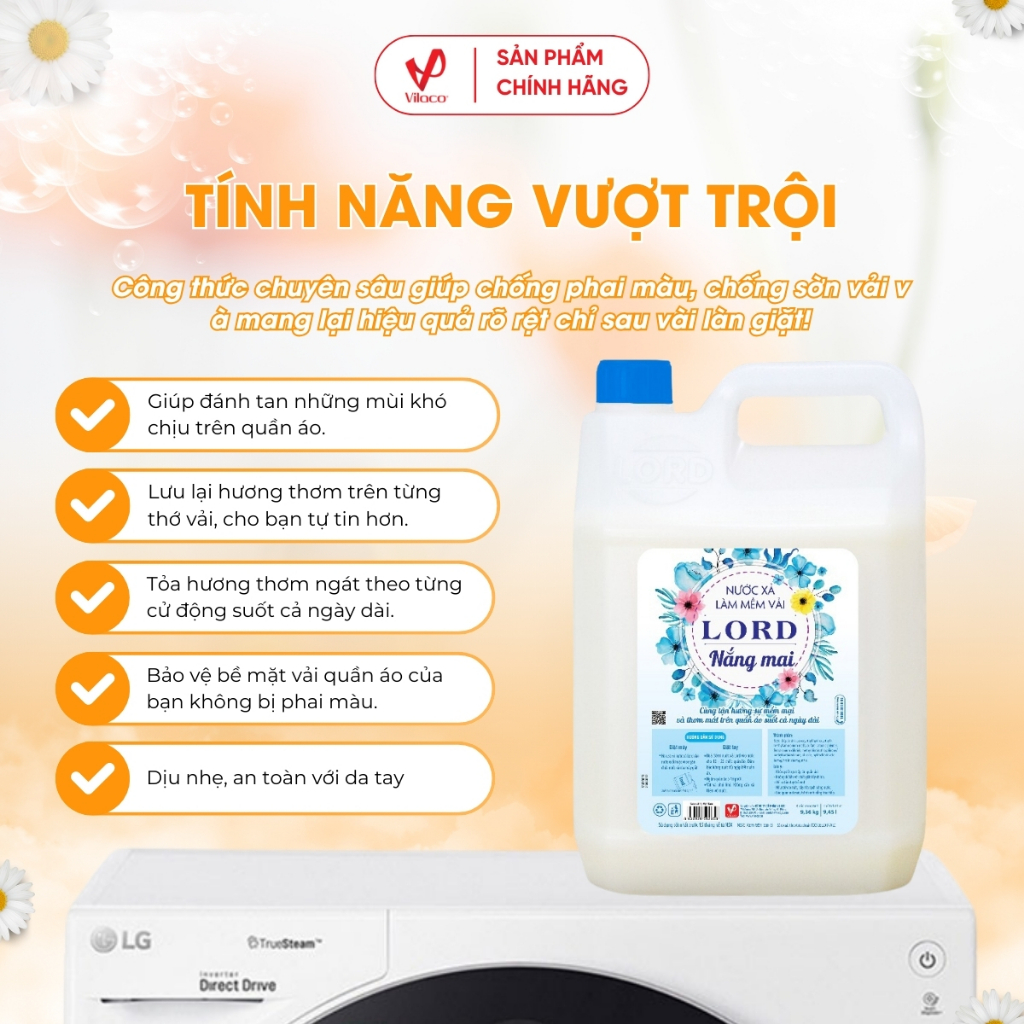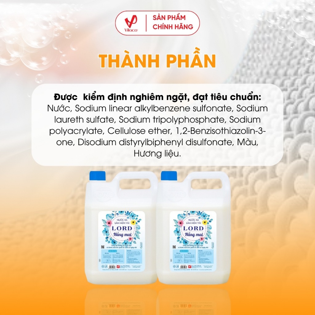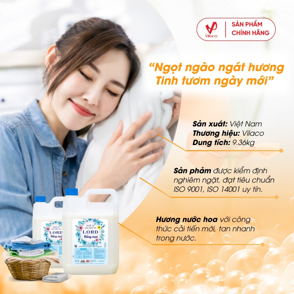 Uy tín và trách nhiệm mang đến những sản phẩm chất lượng tốt, an toàn với con người là những mục tiêu phát triển bền vững của Vilaco. Vì vậy, nước xả làm mềm vải Lord hương nắng mai 9.36kg trải qua nhiều kiểm nghiệm khắt khe về chất lượng và sự an toàn mới đưa ra thị trường.