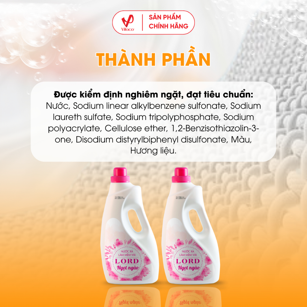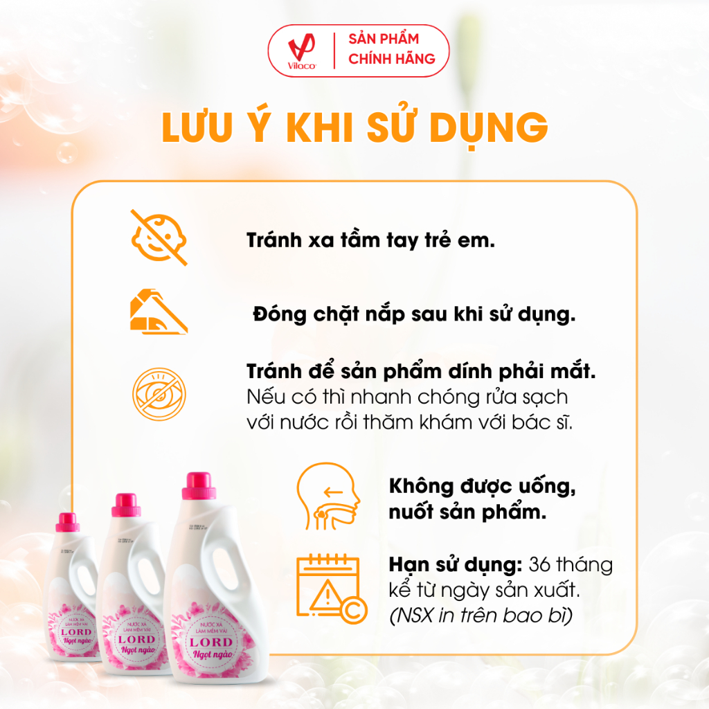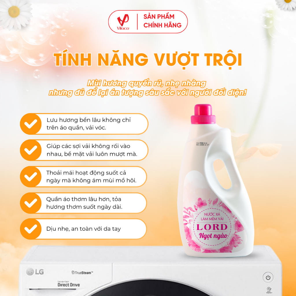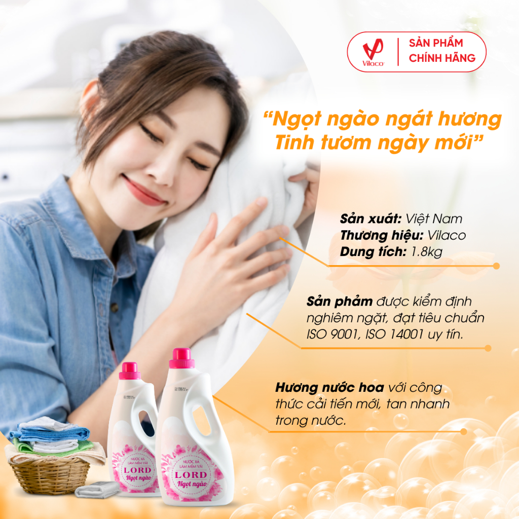 Nước xả Lord hương ngọt ngào với công thức cải tiến giúp các sợi vải không rối vào nhau, giữ cho bề mặt vải luôn mượt mà và dễ là ủi. Nước xả Lord được sản xuất với công nghệ lưu hương hiện đại nhất khiến quần áo của bạn luôn tỏa "hương thơm ngọt ngào đầy tinh tế", giúp bạn thoải mái hoạt động suốt cả ngày mà không sợ ám mùi mồ hôi.