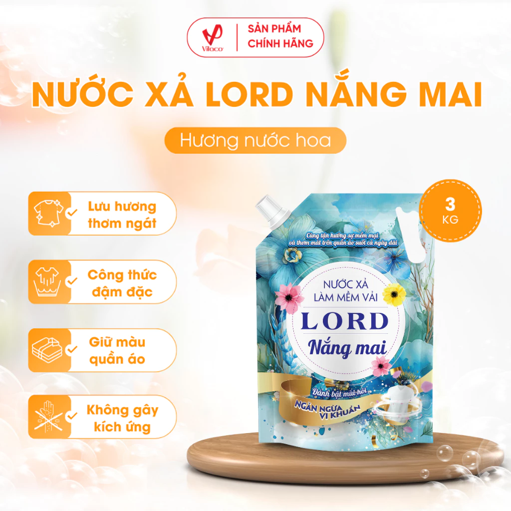 Nước xả làm mềm vải Lord hương nắng mai 3kgsử dụng hương thơm đến từ Châu Âu, kết hợp với công thức đậm đặc đánh bật mùi hôi khó chịu, giúp làm mềm vải nhưng không phai màu quần áo, cho quần áo cả ngày dài thơm mát.