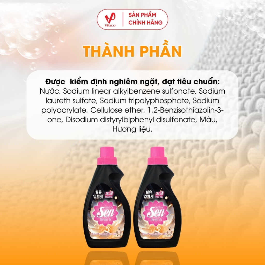 Bên cạnh đó, những thành phần của nước xả cao cấp Sen Huyền Bí đều được nghiên cứu và chọn lọc kỹ lưỡng kết hợp cùng cơ chế thẩm thấu nhanh vào từng sợi vải, đảm bảo an toàn với cả những làn da nhạy cảm nhất và giữ cho quần áo thơm mát suốt ngày dài. Ngoài việc lưu hương lâu bền lâu, nước xả vải Sen còn giúp khử đi những mùi khó chịu trên quần áo, xua tan mùi ẩm mốc vào những ngày mưa. Sản phẩm thích hợp cho cả giặt máy và giặt tay.